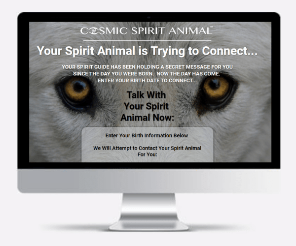 Offer Information: Your Spirit Animal Is Trying To Connect With You Offer. Dynamic Personalized Report System With Full Upsell / Downsell Chain. Commissions Up To 75% Including Lifetime Rebills. Fun For A Wide Range Of Markets. System By CB Platinum Vendor.